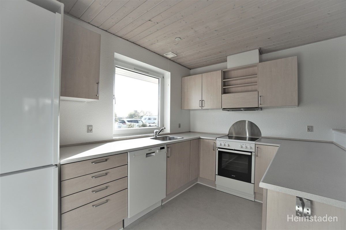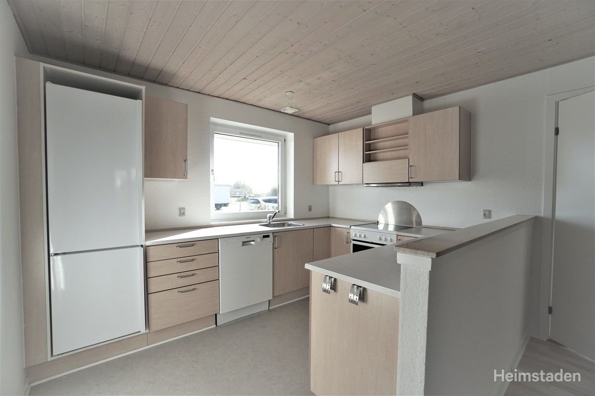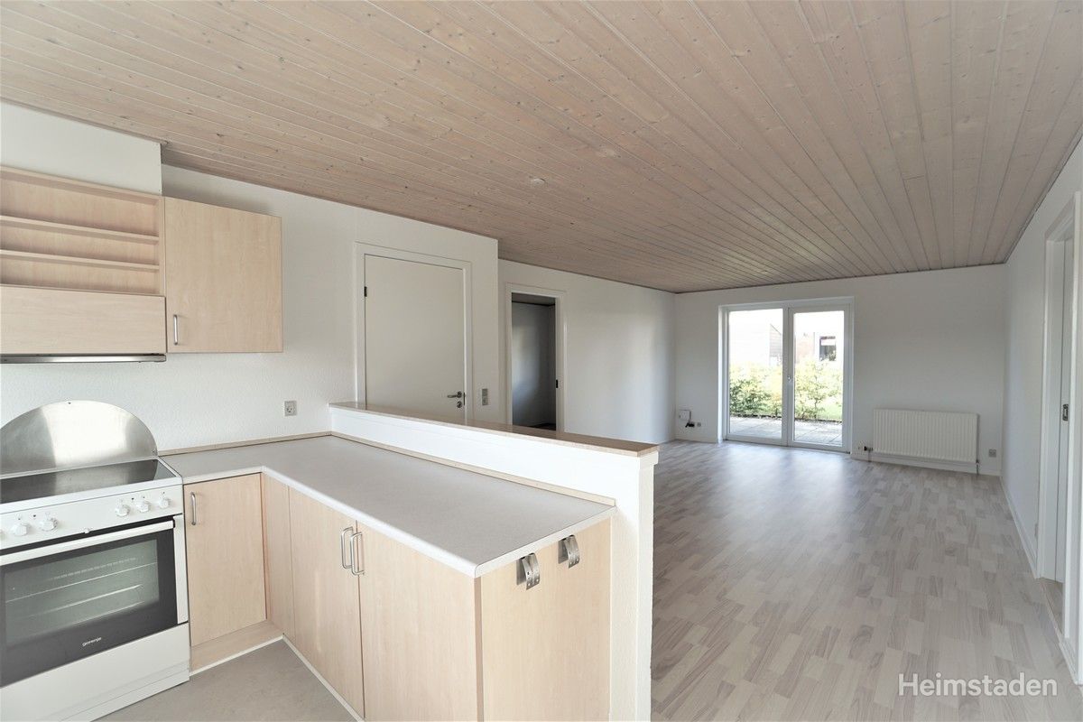 Dette 4-værelses lejemål i 1 plan er indrettet med entré, hvorfra der er adgang badeværelset. Fra stuen er der adgang til de 3 soveværelser. Køkkent er i åben forbindelse med stuen. Fra stuen er der direkte adgang til privat terrasse og have. I alle værelserne er der indbyggede skabe. Der er anlagt gulvvarme i entré og badeværelse.