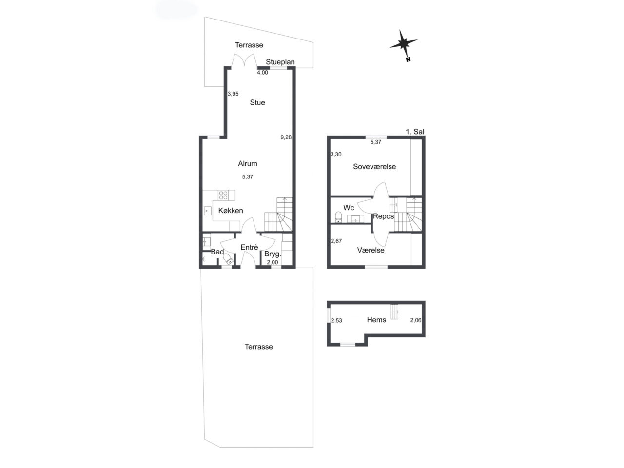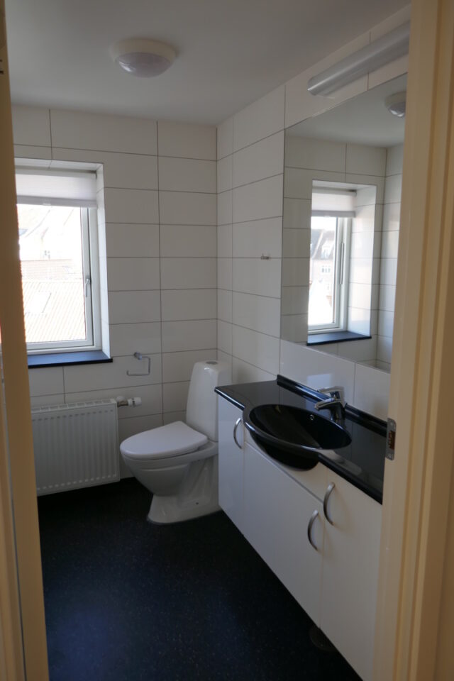 Første salen indeholder to værelser samt toilet. Begge værelser er med faste skabe.